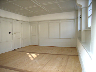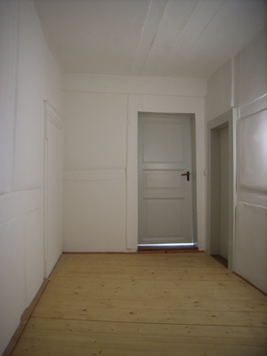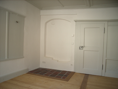im Gegensatz zur reich ausgestatteten Stube karge Flur mit weiß gekalkten