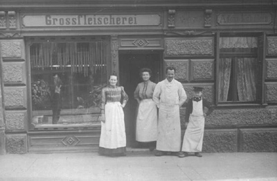 Historisches Foto der nördlichen Schaufensterfront mit der Gestaltung aus dem Jahr 1895, aufgenommen Anfang des 20.Jahrhunderts.