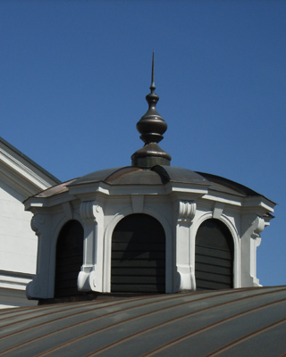 Die reich profilierte Schmuckgaube auf der Westseite der Kuppel hatte ihr Pendant im Osten verloren.. Hier wurde eine Kopie nach der Vorlage der erhaltenen Gaube angefertigt.